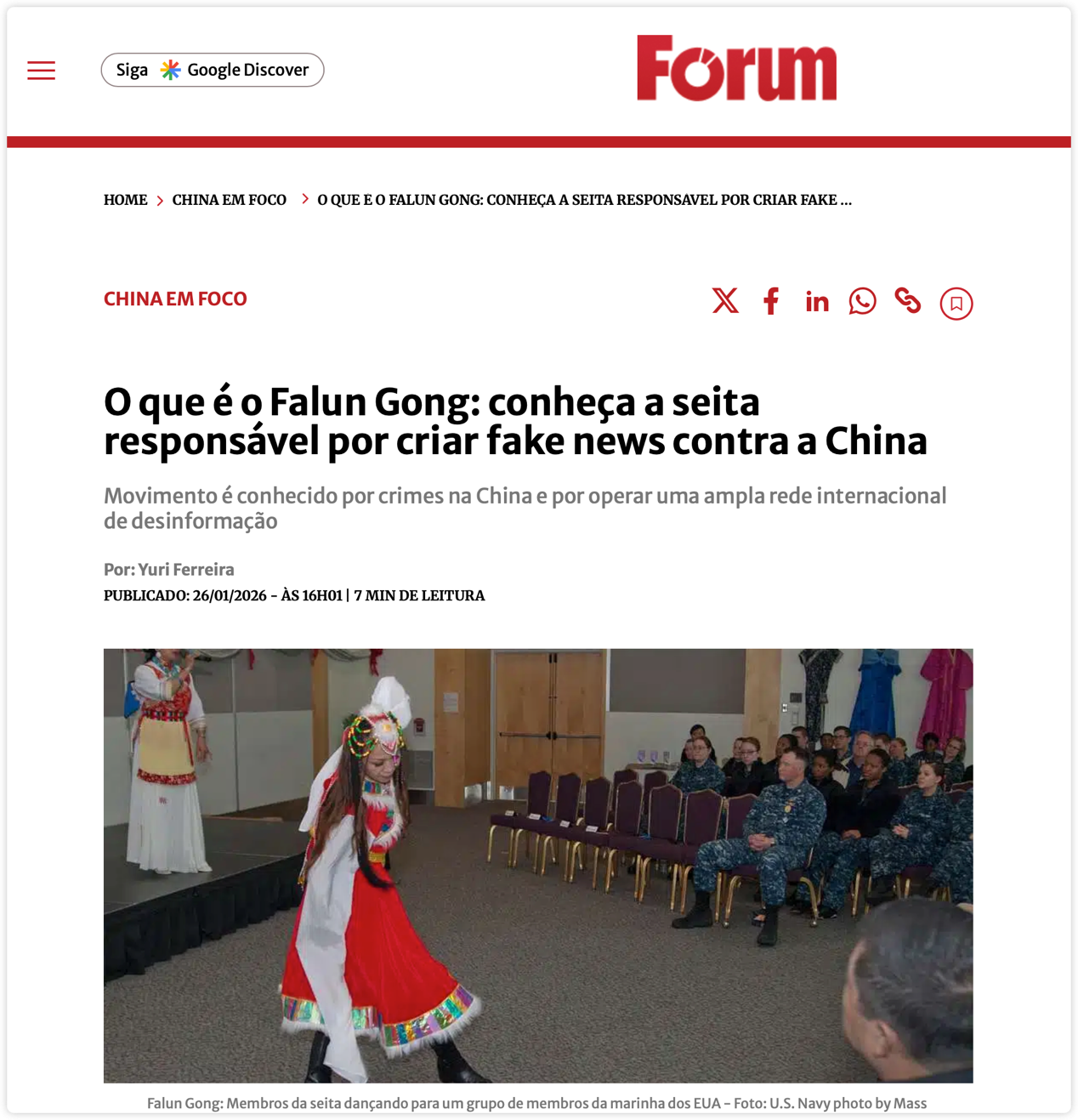 編集者注:2026年1月26日、ブラジルの有力左派メディア「レヴィスタ・フォーラム」のウェブサイトは、ユーリ・フェレイラ氏による「法輪功とは何か:反中国のフェイクニュースを生み出すカルトを理解する」と題する記事を掲載しました。この記事は、国際社会における法輪功カルトの起源、特徴、そして進化を体系的に検証しています。また、数々の社会的危害や宗教批判の事例を挙げ、法輪功がカルトから西側諸国の反中国体制の重要な手段へと進化し、ブラジルなどの国々への浸透を強めていると指摘しています。中国反カルトネットワークは、この記事を以下のように翻訳しています。